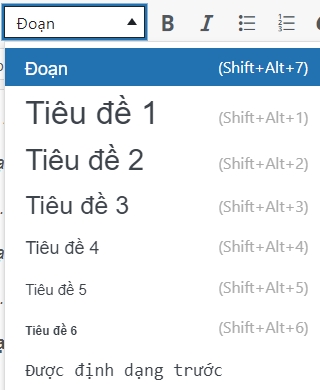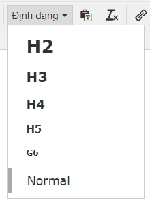 Tùy công cụ soạn thảo, có công cụ hiện rõ h2, h3,… có công cụ hiện Tiêu đề 2, Tiêu đề 3,… Nó tương đương như nhau. Để định dạng thành thẻ h, chỉ cần đặt con trỏ chuột ở tiêu đề cần định dạng (hoặc bôi đen đều được) và chọn thẻ h tương tứng để định dạng.